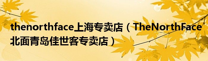 导读 大家好,源源来为大家解答以上问题。thenorthface上海专卖店,TheNorthFace北面青岛佳世客专卖店很多人还不知道,现在让我们一起来看看吧!