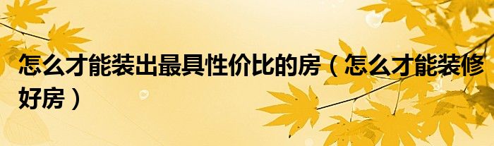 怎么才能装出最具性价比的房(怎么才能装修好房)