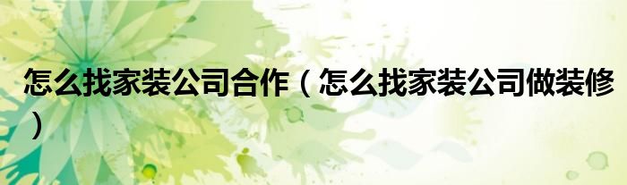大家好,啊来为大家解答以上的问题。怎么找家装公司合作,怎么找家装公司做装修这个很多人还不知道,现在让我们一起来看看吧!