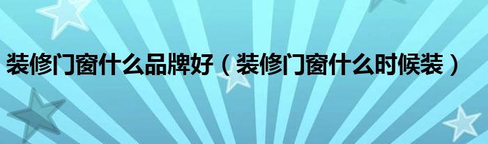 装修门窗什么品牌好(装修门窗什么时候装)