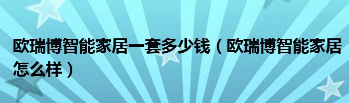 欧瑞博智能家居一套多少钱(欧瑞博智能家居怎么样)