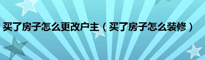 大家好,啊来为大家解答以上的问题。买了房子怎么更改户主,买了房子怎么装修这个很多人还不知道,现在让我们一起来看看吧!