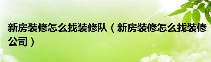 新房装修怎么找装修队(新房装修怎么找装修公司)