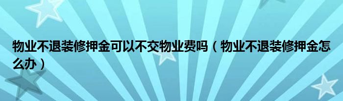 物业不退装修押金可以不交物业费吗(物业不退装修押金怎么办)