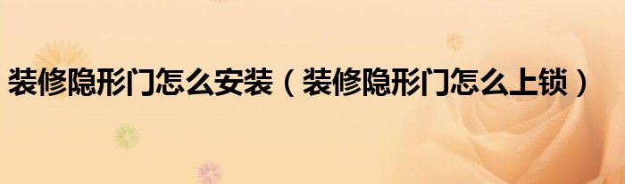 装修隐形门怎么安装(装修隐形门怎么上锁)