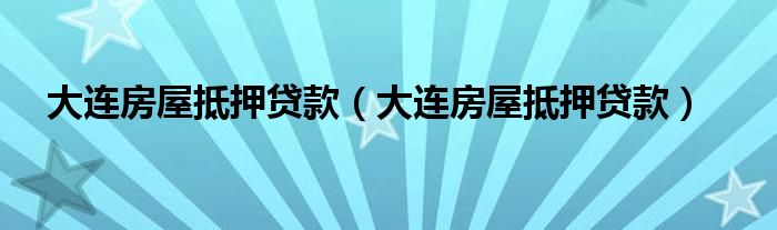 大连房屋抵押贷款(大连房屋抵押贷款)