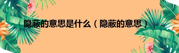 大家好,甜甜来为大家解答以上问题,隐蔽的意思是什么,隐蔽的意思很多人还不知道,现在让我们一起来看看吧!