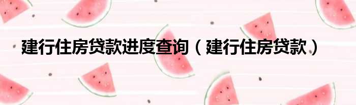 建行住房贷款进度查询(建行住房贷款)