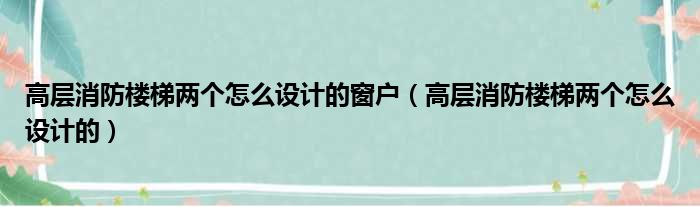 高层消防楼梯两个怎么设计的窗户(高层消防楼梯两个怎么设计的)