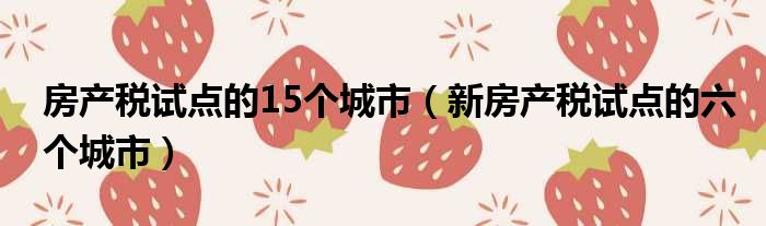 大家好,甜甜来为大家解答以上问题,房产税试点的15个城市,新房产税试点的六个城市很多人还不知道,现在让我们一起来看看吧!