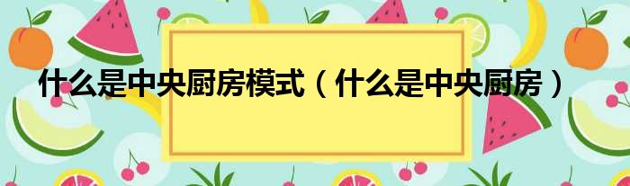 大家好,甜甜来为大家解答以上问题,什么是中央厨房模式,什么是中央厨房很多人还不知道,现在让我们一起来看看吧!