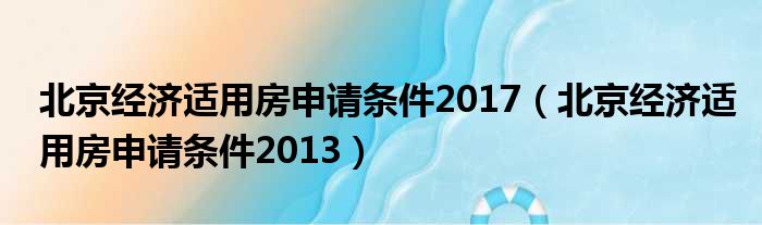 北京经济适用房申请条件2017(北京经济适用房申请条件2013)