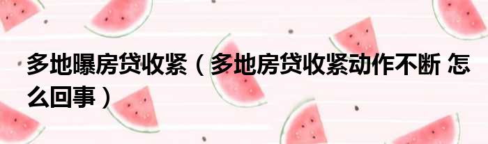多地曝房贷收紧(多地房贷收紧动作不断 怎么回事)