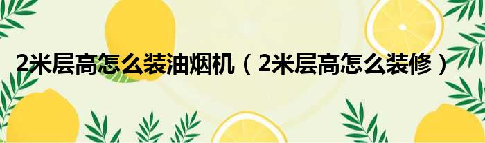 2米层高怎么装油烟机(2米层高怎么装修)