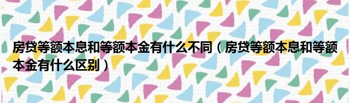 房贷等额本息和等额本金有什么不同(房贷等额本息和等额本金有什么区别)