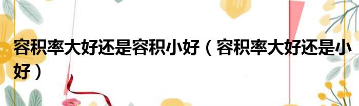 容积率越小越好。一个良好的居住小区,高层住宅容积率应不超过5,多层住宅应不超过3,但由于受土地成本的限制,并不是所有项目都能做得到。说到底就是小区里户数、人数和小区面积的关系,当然户越少、人越少,面积越大越舒服了。
