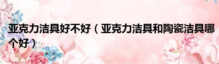 亚克力洁具好不好(亚克力洁具和陶瓷洁具哪个好)