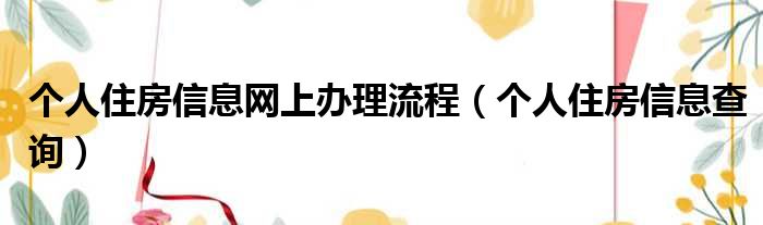 大家好,甜甜来为大家解答以上问题,个人住房信息网上办理流程,个人住房信息查询很多人还不知道,现在让我们一起来看看吧!