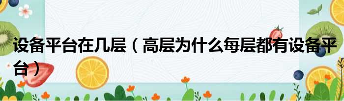 大家好,啊来为大家解答以上的问题。设备平台在几层,高层为什么每层都有设备平台这个很多人还不知道,现在让我们一起来看看吧!