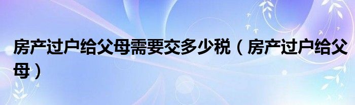 大家好,甜甜来为大家解答以上问题,房产过户给父母需要交多少税,房产过户给父母很多人还不知道,现在让我们一起来看看吧!