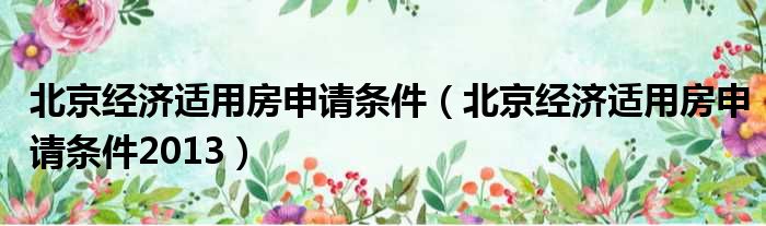 北京经济适用房申请条件(北京经济适用房申请条件2013)