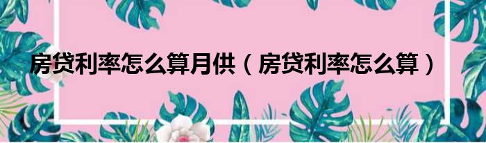 房贷利率怎么算月供(房贷利率怎么算)