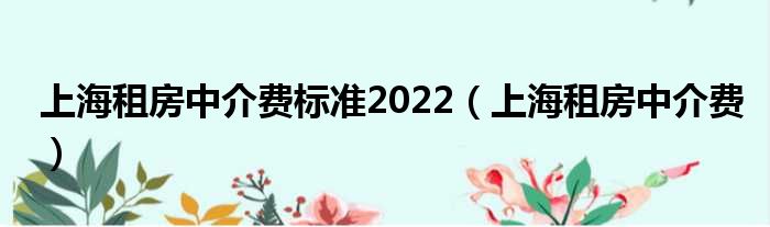 上海租房中介费标准2022(上海租房中介费)