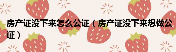 导读 大家好,甜甜来为大家解答以上问题,房产证没下来怎么公证,房产证没下来想做公证很多人还不知道,现在让我们一起来看看吧!没有房产证是无