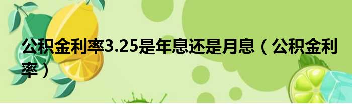 大家好,甜甜来为大家解答以上问题,公积金利率3.25是年息还是月息,公积金利率很多人还不知道,现在让我们一起来看看吧!
