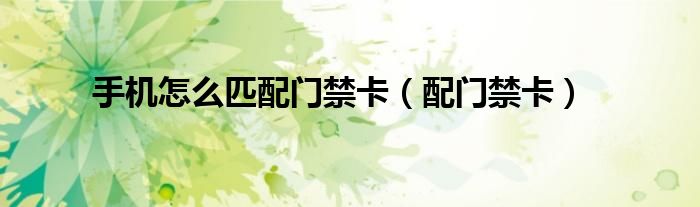 大家好,甜甜来为大家解答以上问题,手机怎么匹配门禁卡,配门禁卡很多人还不知道,现在让我们一起来看看吧!
