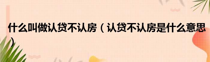 什么叫做认贷不认房(认贷不认房是什么意思)
