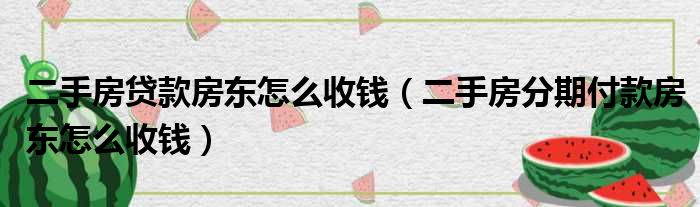 二手房贷款房东怎么收钱(二手房分期付款房东怎么收钱)