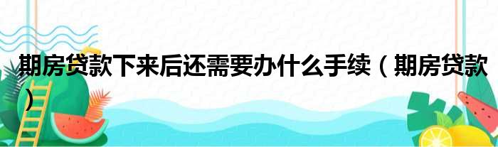 大家好,甜甜来为大家解答以上问题,期房贷款下来后还需要办什么手续,期房贷款很多人还不知道,现在让我们一起来看看吧!