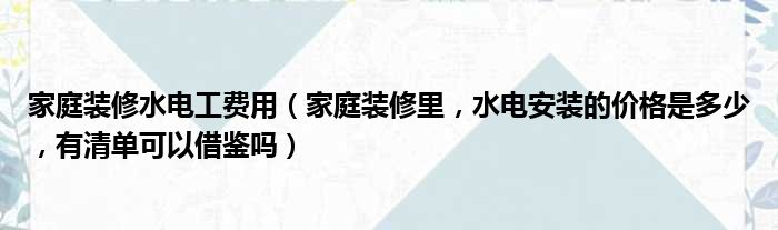 家庭装修水电工费用(家庭装修里,水电安装的价格是多少,有清单可以借鉴吗)