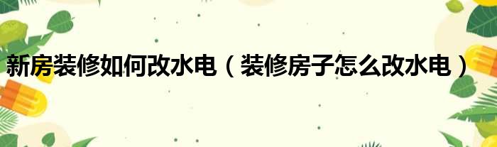大家好,啊来为大家解答以上的问题。新房装修如何改水电,装修房子怎么改水电这个很多人还不知道,现在让我们一起来看看吧!