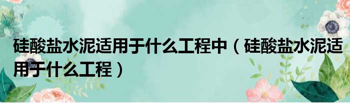 硅酸盐水泥适用于什么工程中(硅酸盐水泥适用于什么工程)