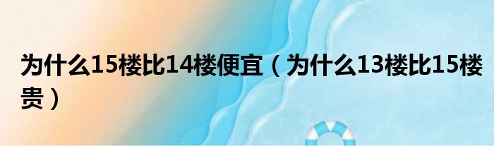 为什么15楼比14楼便宜(为什么13楼比15楼贵)