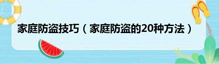 家庭防盗的20种方法:装监控、装防盗门、门口记号拆除、不给陌生人开门、装插销、门后设机关、拉窗帘、装防盗窗、阳台感应灯、钥匙随身带、装报警系统、装限位器、养狗、装阻门器、猫眼遮挡、随手关门、财不外露、挂风铃、邻里照应、及时报警。