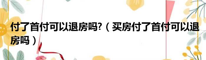 付了首付可以退房吗?(买房付了首付可以退房吗)