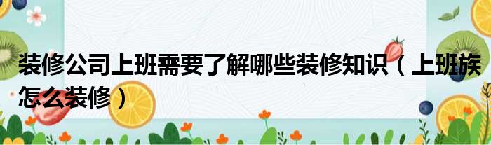装修公司上班需要了解哪些装修知识(上班族怎么装修)