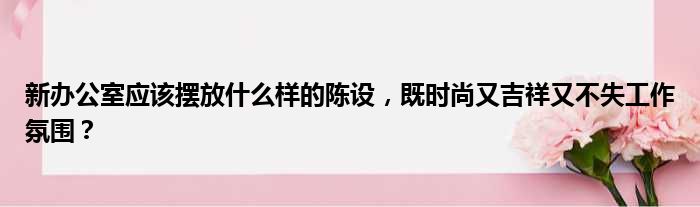 导读 大家好,啊来为大家解答以上的问题。新办公室应该摆放什么样的陈设,既时尚又吉祥又不失工作氛围?这个很多人还不知道,现在让我们一起来看