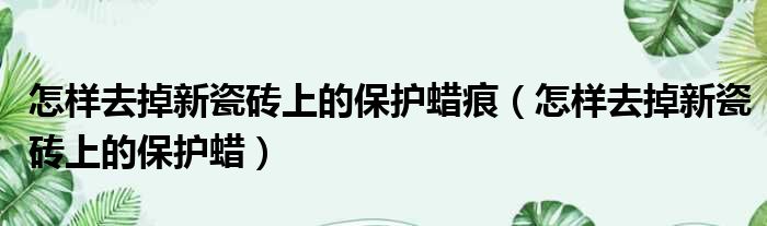 怎样去掉新瓷砖上的保护蜡痕(怎样去掉新瓷砖上的保护蜡)