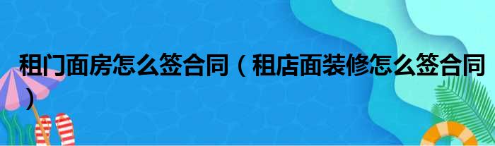 大家好,啊来为大家解答以上的问题。租门面房怎么签合同,租店面装修怎么签合同这个很多人还不知道,现在让我们一起来看看吧!