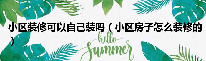 大家好,啊来为大家解答以上的问题。小区装修可以自己装吗,小区房子怎么装修的这个很多人还不知道,现在让我们一起来看看吧!