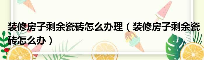 装修房子剩余瓷砖怎么办理(装修房子剩余瓷砖怎么办)
