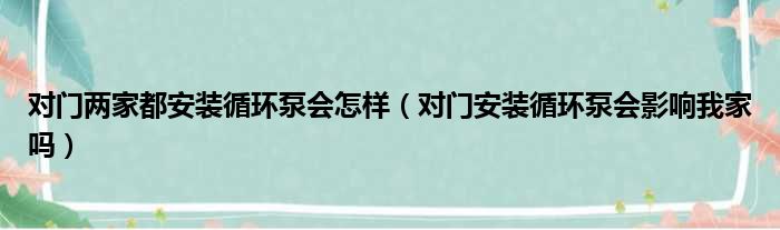 对门两家都安装循环泵会怎样(对门安装循环泵会影响我家吗)