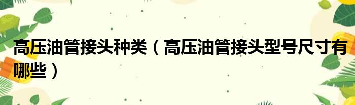 高压油管接头种类(高压油管接头型号尺寸有哪些)