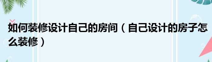 如何装修设计自己的房间(自己设计的房子怎么装修)