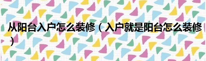 从阳台入户怎么装修(入户就是阳台怎么装修)