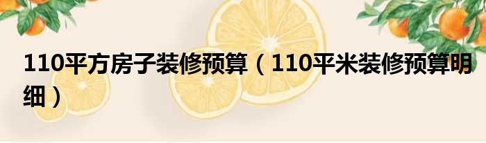110平方房子装修预算(110平米装修预算明细)